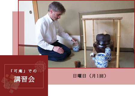 寒い時期は大きめの釜を炉にかけ、盛夏には小ぶりの風炉に釜をかけます。茶席への入り方・歩き方・座り方から始め、
